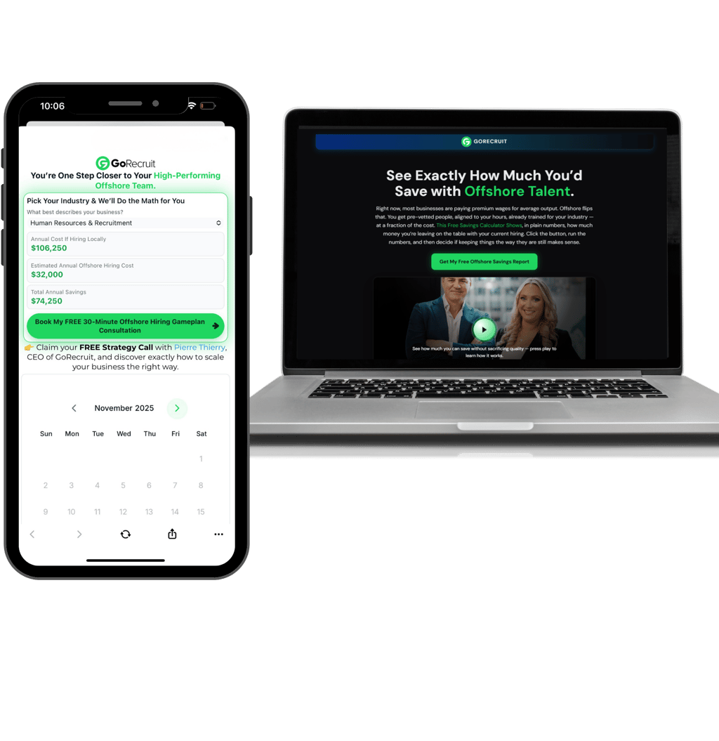 This opt-in page is built around a high-value “Savings Calculator” lead magnet that instantly communicates ROI to business owners exploring offshore hiring. The page combines a bold, outcome-driven headline with a clean dark interface, trust-building visuals, and a single clear CTA. By offering personalized savings insights instead of a generic freebie, this page consistently attracts high-intent leads and pre-frames them for the next step of the funnel.